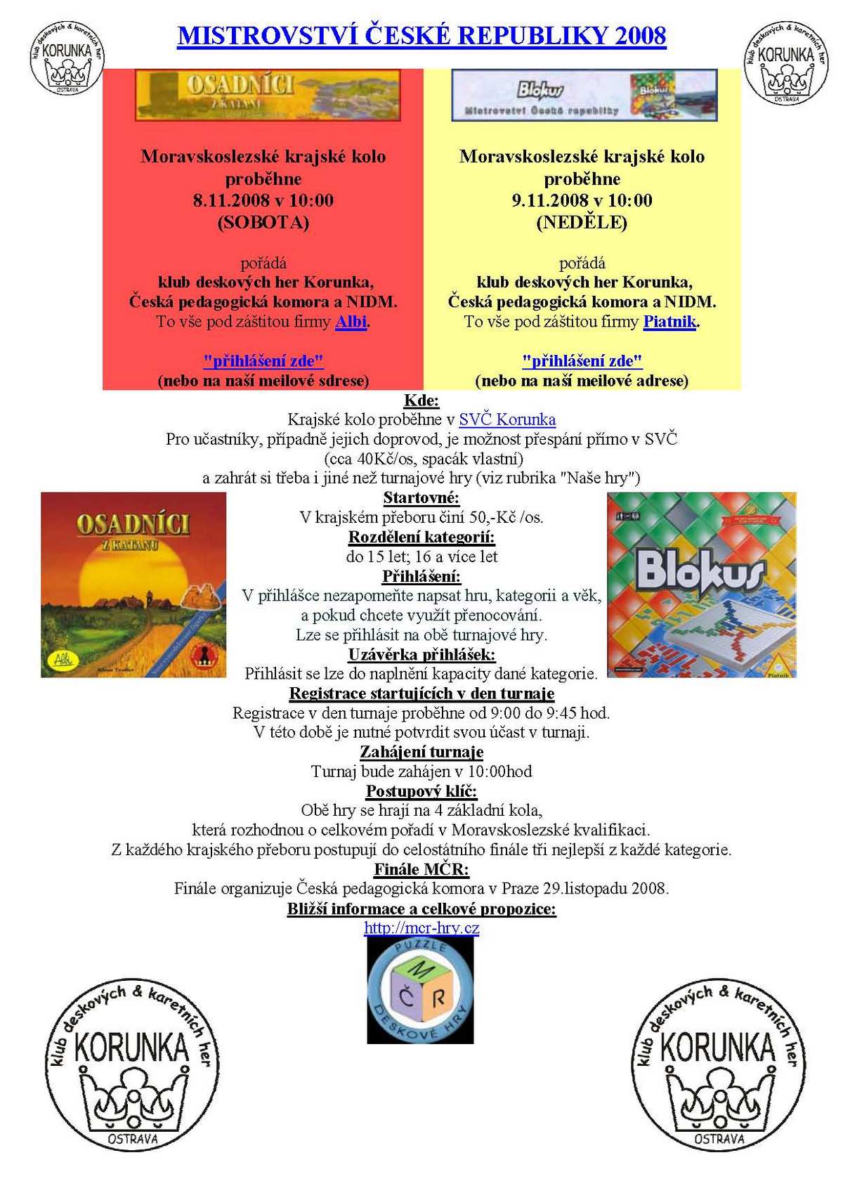 Krajské kolo MČR v Osadnících a v Blokusu
