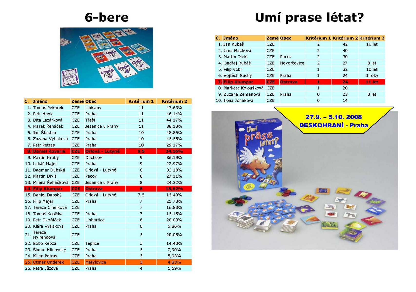 Lidí přijelo požehnaně (z Korunky Junior, Cauly, Lumír, Lenka, Ellife, Roneth, Vodka, Šimi, Deli, Verča). Proběhl i miniturnaj v Tichu, ve kterém zvítězili Plzeňáci (Plema s Tomem) a na druhém místě se umístil Deli s Caulym. Nejhranější hrou byl pravděpodobně Smallworld a Le Havre, také Adios Amigos, Alea Iacta Est. Také prototypy jako Loděnice Vládi Suchého či Dungeon Keeper od Vládi Chvátila se derou k hráčské veřejnosti. Úspěch také sklidil dřevěný magnetický fotbálek!