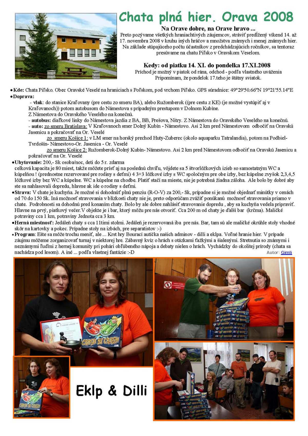 Na chatu Piľsko v Oravskom Veselom jel Lumír s Lenkou. Velmi se jim líbila tato akcička, kterou pořádají naši východní sousedé. Na chatě proběhl i slovensko-český křest hry "Bourací autíčka" aneb "Crash by crash".