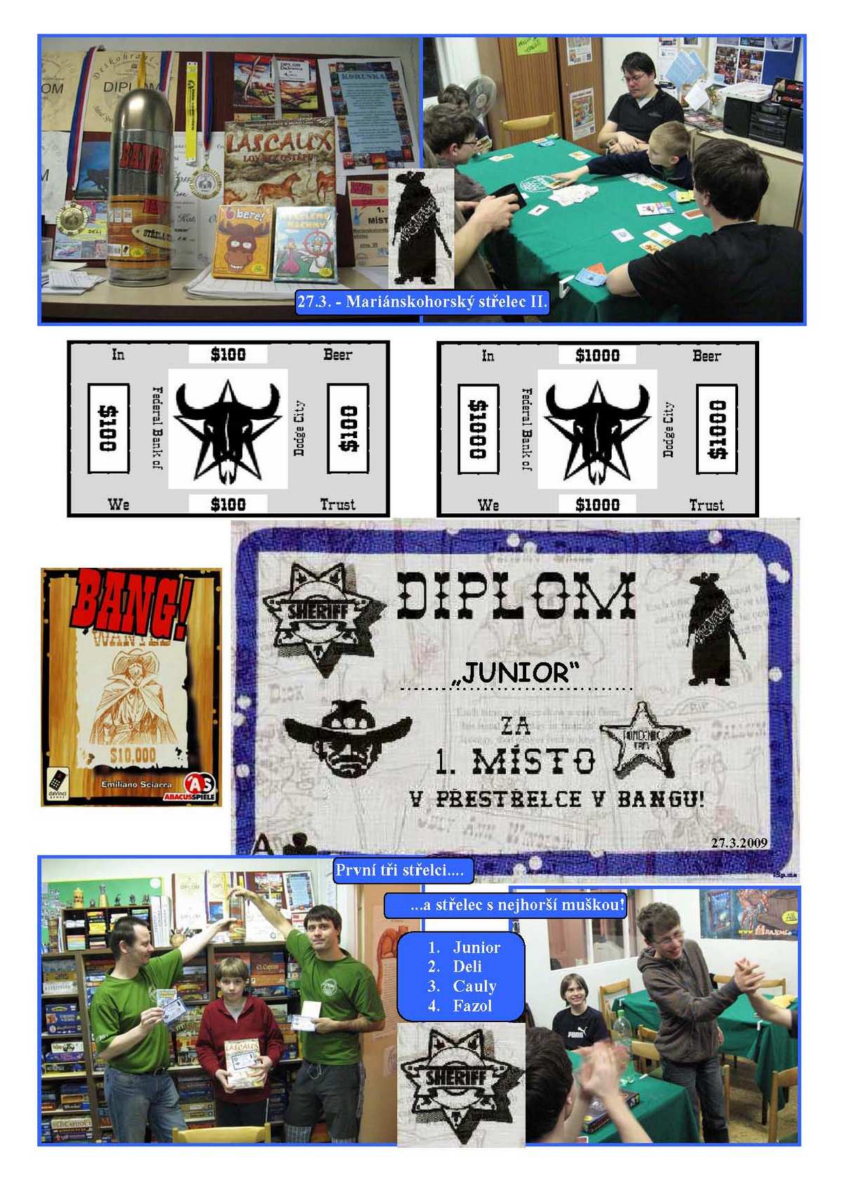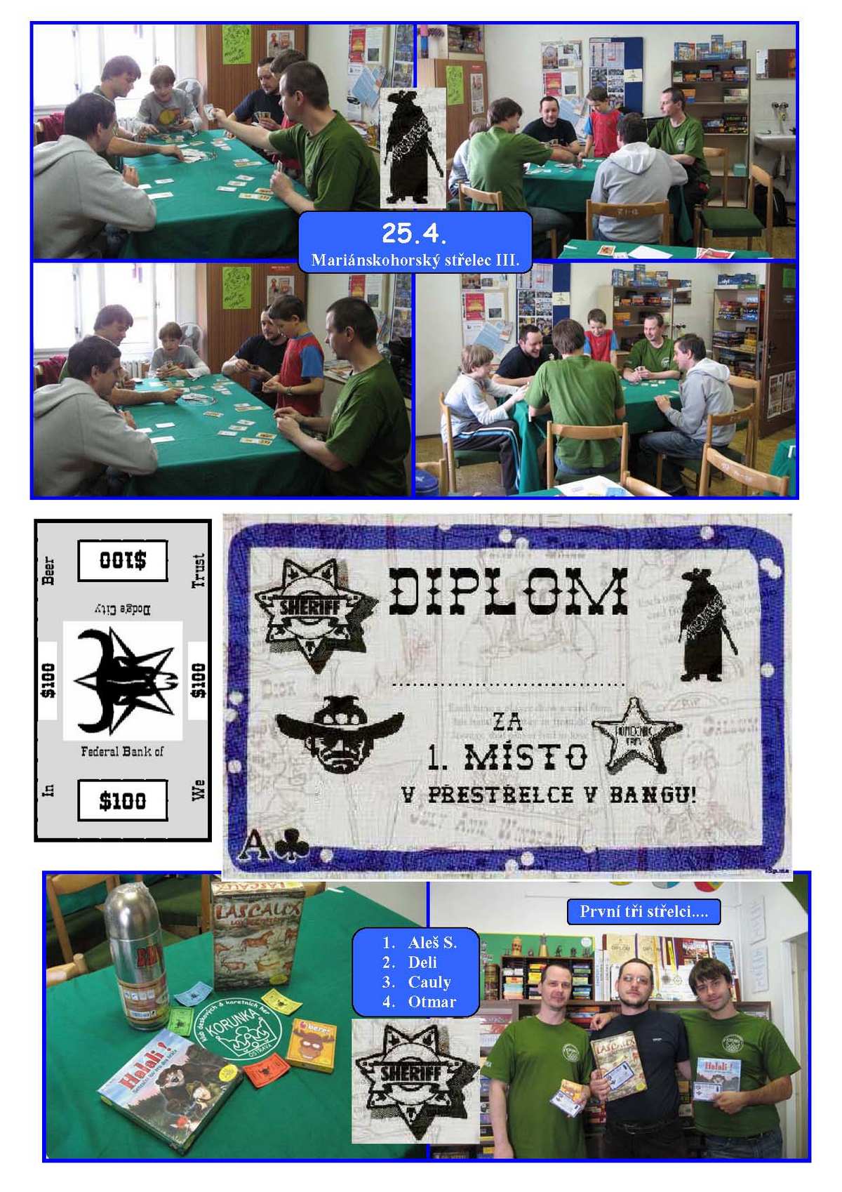 Proběhl druhý díl trilogie boje o šerifskou hvězdu a nábojnici. Tentokráte byla účast podstatně větší a zápolení desperádů a mužů zákona podstatně napínavější. V lítém boji nakonec zvítězil Junior, kterému se jako jedinému podařilo zvítězit v roli odpadlíka, těsně v závěsu za ním se držel Deli a Cauly.